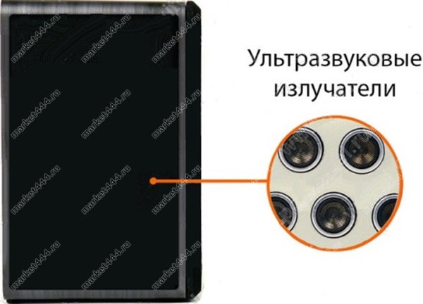 12 УЗ излучателей в боковой панели колонки. Ультразвук излучается не из лицевой панели корпуса колонки, а сбоку. Поэтому, при установке подавителя ""лицом"" к офисному столу, его излучатели будут направлены прямо на вашего собеседника, что позволяет максимально эффективно глушить микрофоны.